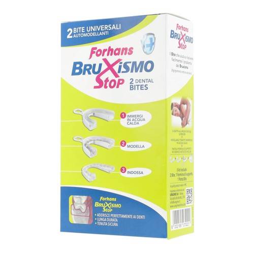 Bite universale automodellante che va modellato in acqua calda per farlo adattare all'arcata dentale superiore e va "indossato" la sera prima di andare a dormire per evitare il danneggiamento dei denti dovuto al digrignamento notturno involontario (bruxismo).